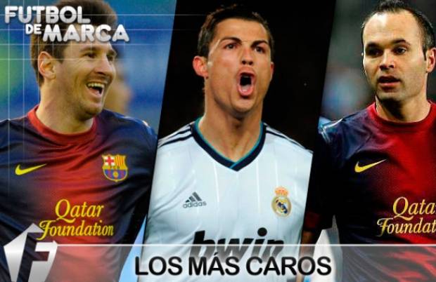 La lista está liderada por el Argentino Lionel Messi quien está valorado en 120 millones de euros seguido de Cristiano Ronaldo quien se valora en 100 millones.