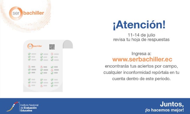Los estudiantes y bachilleres que rindieron el Examen Ser Bachiller pueden revisar su hoja de respuestas del 11 al 14 de julio, así lo anuncio el INEVAL a través de su cuenta de Facebook.