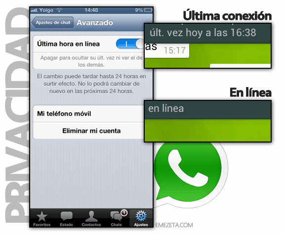Pasos ocultar última conexión en WhasApp: